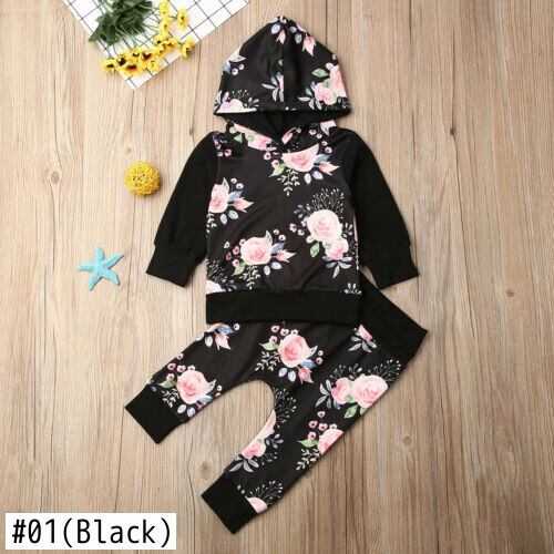 新作 NEW幼児ベビーガールキッズフラワーフード付き洋服セット長袖フローラルトップス+ズボンパンツ防寒着0-24M