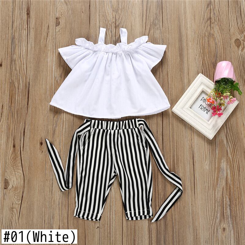 新作 2PCS幼児キッズベビーガールストライプサンスーツオフショルダーベストトップスロングパンツガールズサマー衣装洋服セット