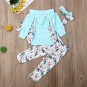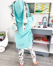 新作 かわいい幼児キッドベビーボーイズガールズ長袖フード付きウサギイヤートップ+フラワーパンツパンツ+帽子服衣装セット
