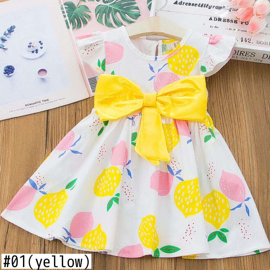 新作 キッズサマードレスガールズフローラルシフォンドレスキッドホリデースタイルかわいいレモンプリントドレス子供用