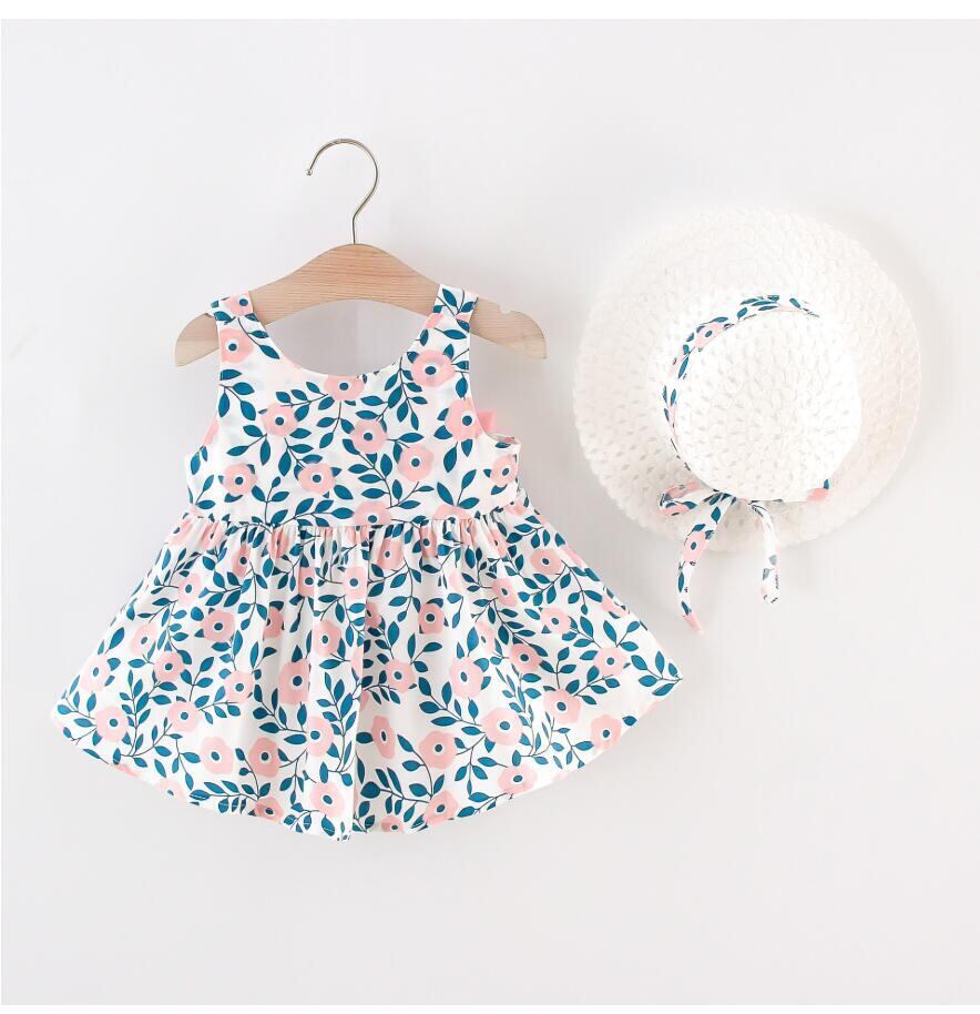 新作 春~夏 女の子の赤ちゃんのドレス 幼児のプリントドレス 誕生日&パーティードレス おまけで帽子が付きます!