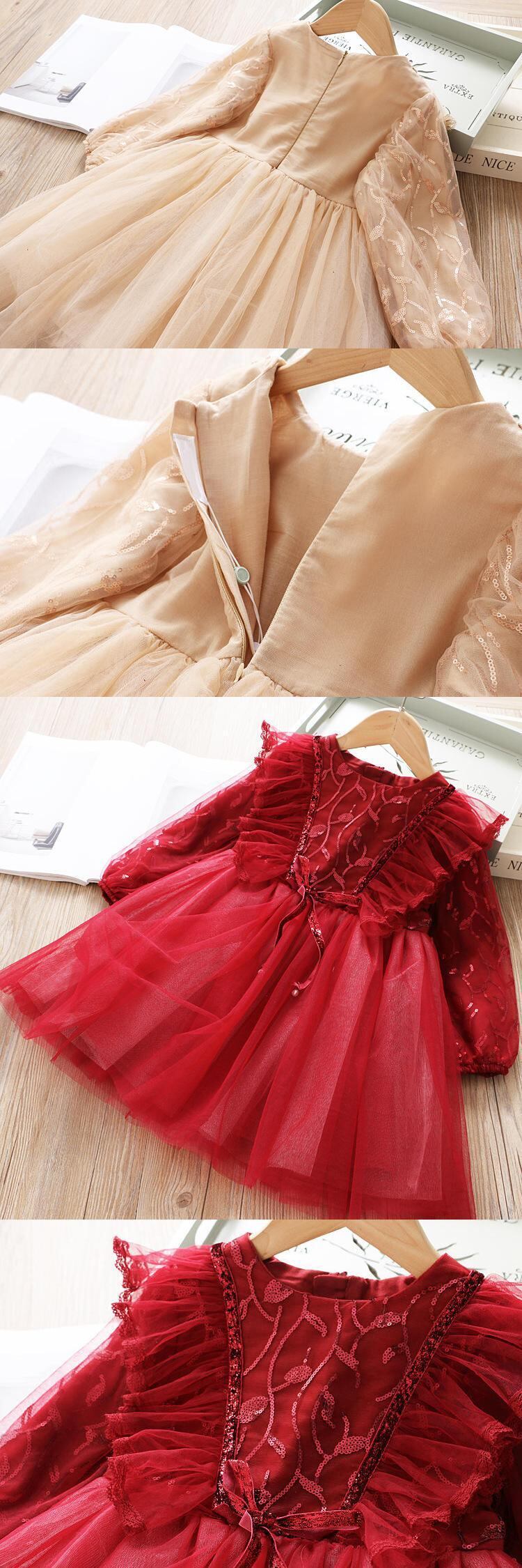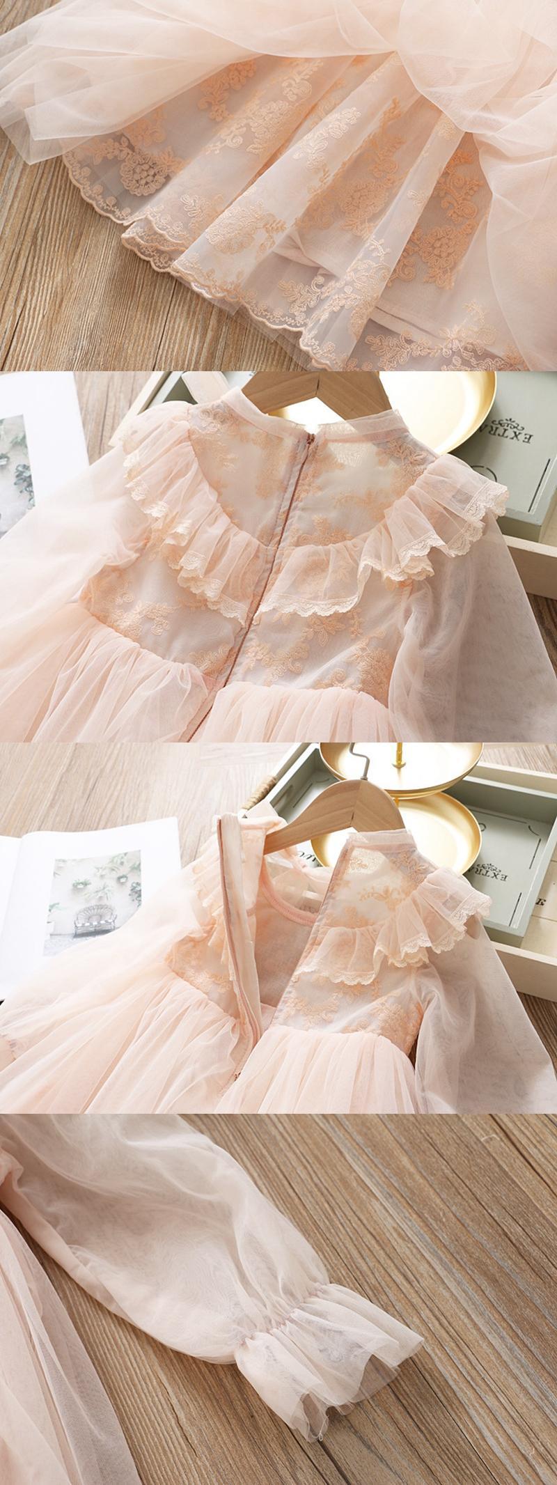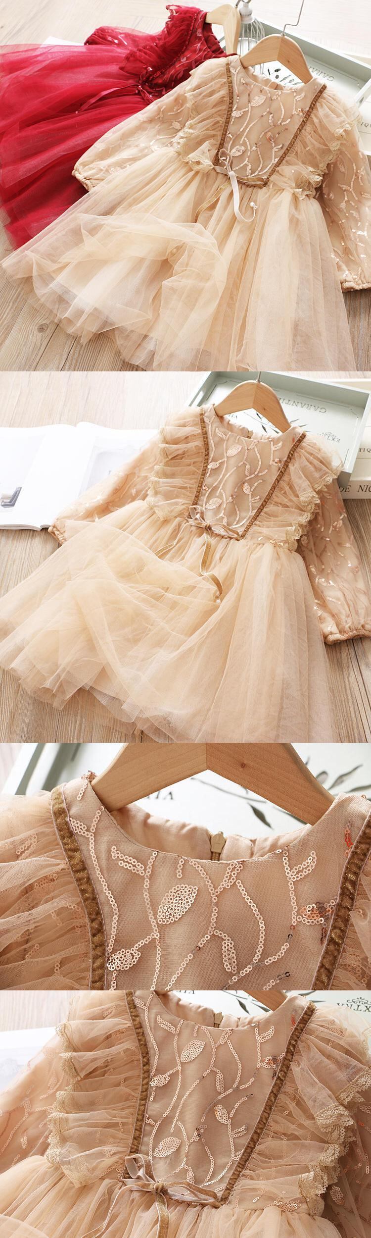 人気売れ筋商品!! 新作 女の子用 レースの花の刺繡ドレス 長袖春冬 パーティー チュチュ クリスマス