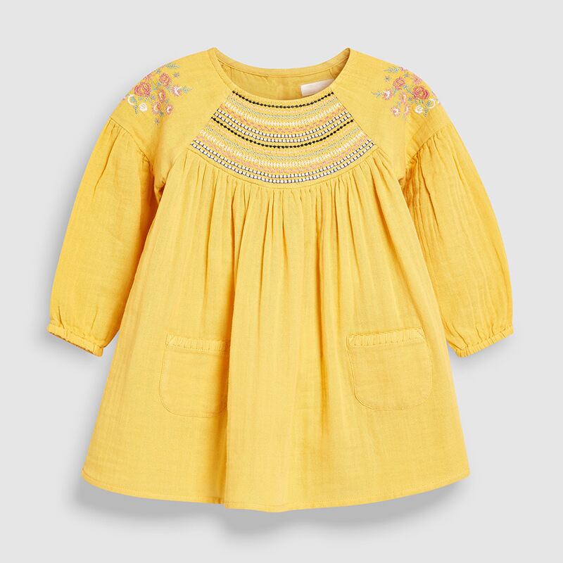 人気売れ筋商品!! 新作 リトルメイヴン 秋春女の子&赤ちゃんの服 黄色い綿のアップリケドレス 2-7歳用