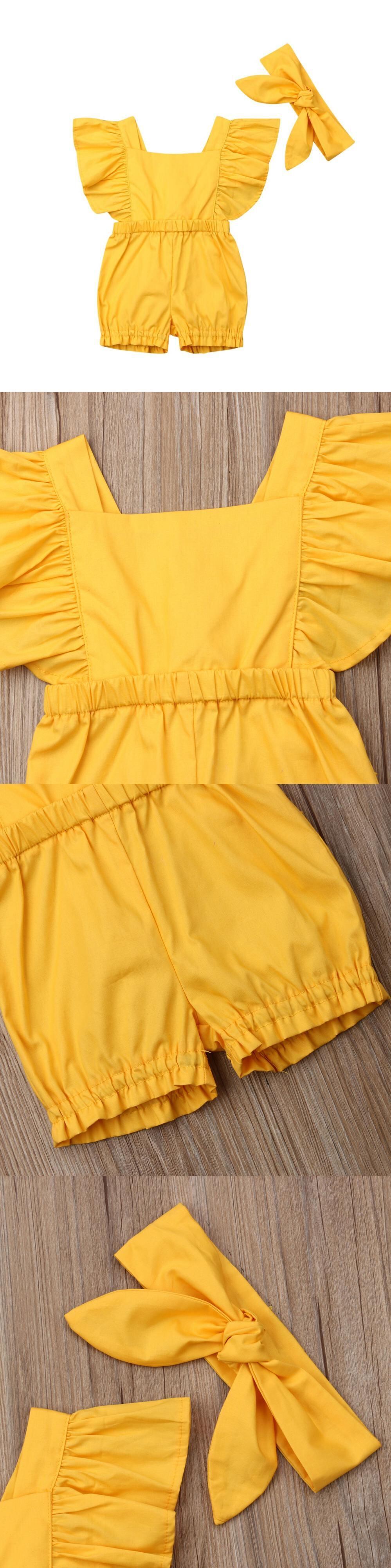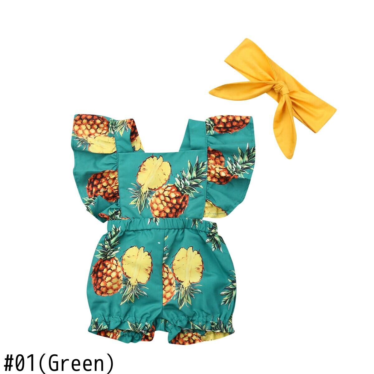 人気売れ筋商品!! 新作 英国生まれの幼児の女の赤ちゃん フライングスリーブロンパース ヘッドバンド ジャンプスーツ サンスーツ服2PCS