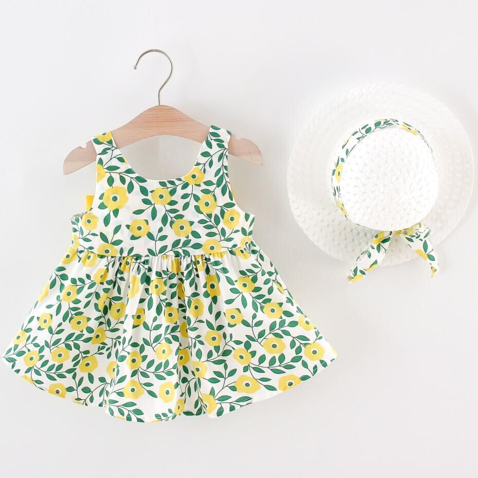 人気売れ筋商品!! 新作 春~夏 女の子の赤ちゃんのドレス 幼児のプリントドレス 誕生日&パーティードレス おまけで帽子が付きます!