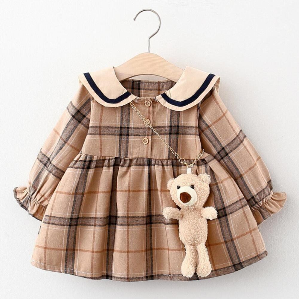 人気売れ筋商品!! 新作 女の子用 春~秋のパーティー 格子縞のドレス 赤ちゃん~幼児 ふわふわボール長袖 ぬいぐるみおまけ付き!