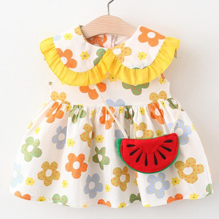 人気売れ筋商品!! 新作 バッグ付き! 夏の赤ちゃん&女の子用 大きな襟付きのかわいいドレス サンドレス
