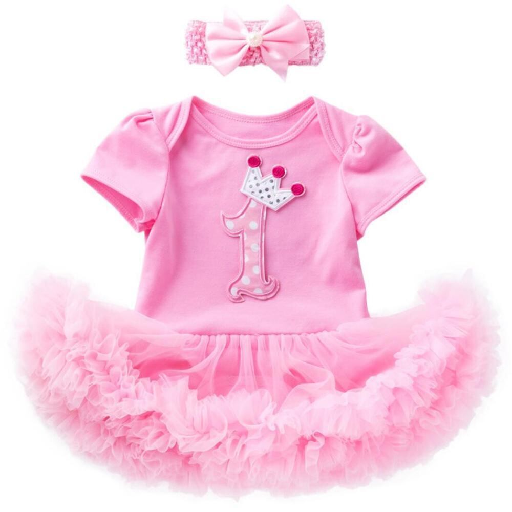 人気売れ筋商品!! 新作 赤ちゃん1歳の誕生日ドレス 幼児の女の子の服 半袖チュチュドレス ロンパースの王冠のヘッドバンド赤ちゃんの服