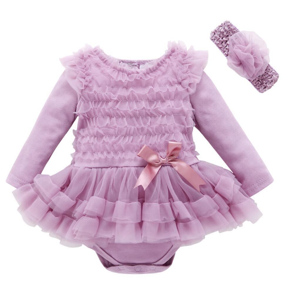 インスタ映え確実! 新作 クリスマスもおしゃれ 生まれたての小さな女の赤ちゃん フリル 赤 ピンク 紫 ツツスカートロンパース カチューシャヘッドバンド付き 女の子用2PCS クリスマス服にも最適