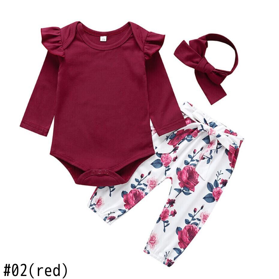 注文多数の人気売れ筋商品!! 新作 生まれた女の子の赤ちゃんの服 春秋用 3点セット 長袖ロンパース+フローラルパンツ+カチューシャ かわいすぎる