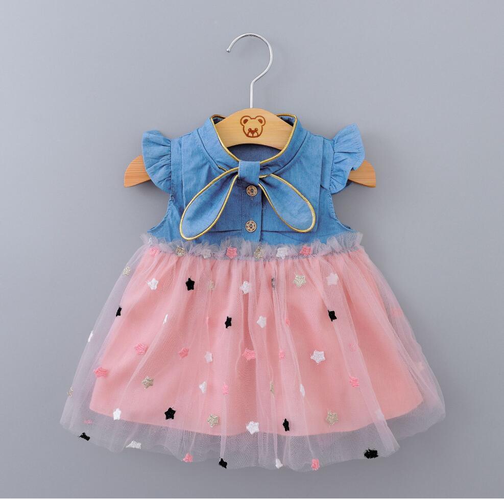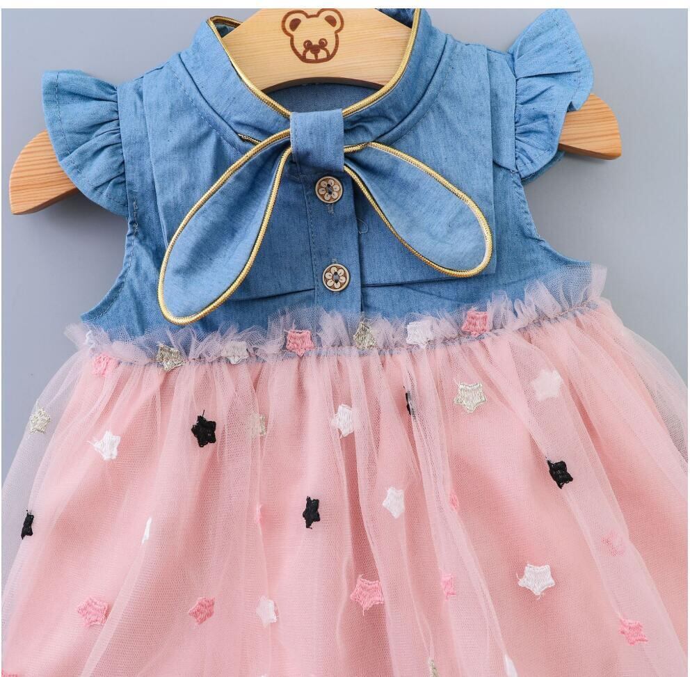 インスタ映え確実! 注文多数の人気売れ筋商品!! 新作 かわいい 女の子の水玉メッシュカウボーイレースドレス 夏春 幼児&ベビードレス 子供服