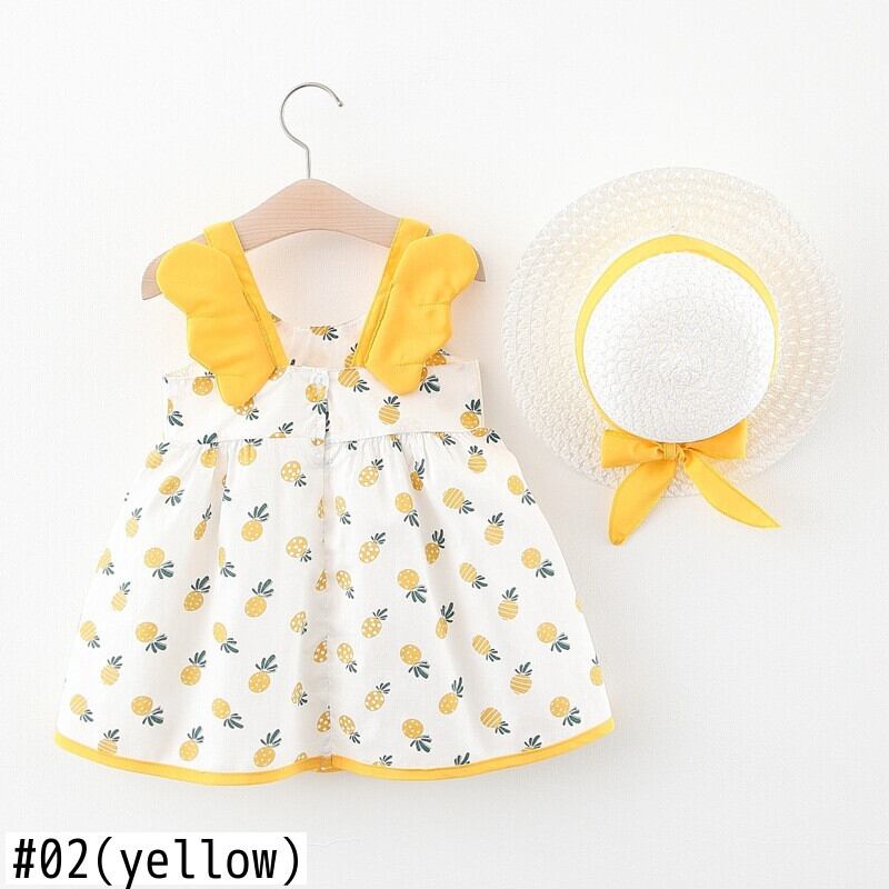 インスタ映え確実! 注文多数の人気売れ筋商品!! 新作 0-2歳用の幼児用 新しいサマードレス ベビーキッズガールズ かわいいエンジェルウィング ノースリーブドレス+日よけ帽子