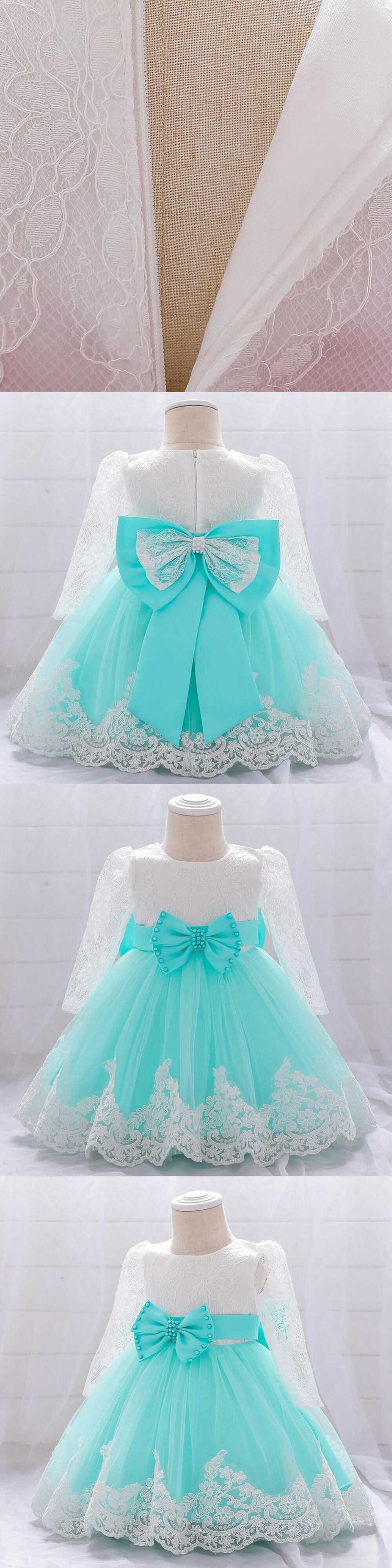 インスタ映え確実! 注文多数の人気売れ筋商品!! 新作 1歳の小さな女の子&赤ちゃん用のドレスボウノットレースフルスリーブ 誕生日プレゼントにも!幼児のワンピースドレス