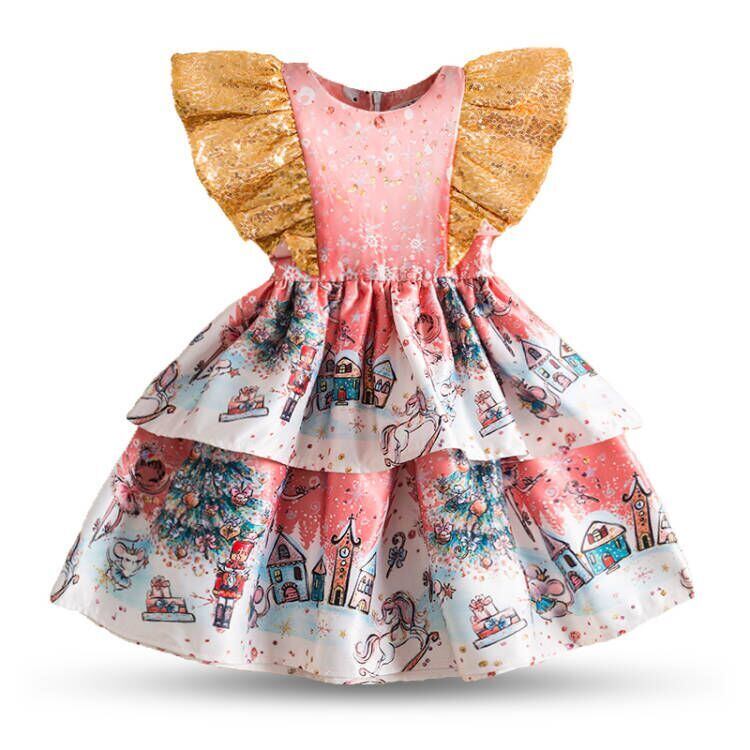 インスタ映え確実! 特価 送料無料!! 新作 1-5歳女の赤ちゃん用ドレス ラフスリーブサマードレス 幼児ボウケーキレイヤー服