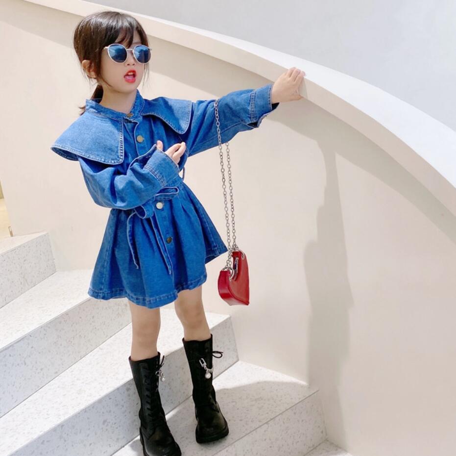 新作 子供女の子ドレスパーティースタイル幼児秋長袖カウボーイラペルボタン赤ちゃん子供服女の子ドレス ロング オータム 秋物 キッズ