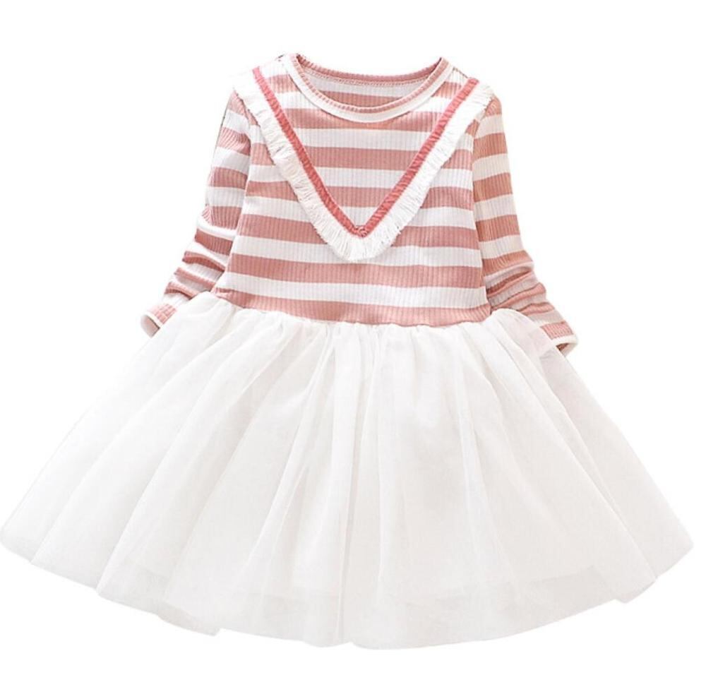 新作 ガールズニットドレス2019秋冬服ストライプキッズ幼児ベビードレスプリンセスコットンテルクリスマスドレス オータム 秋物 ウィンター 冬物