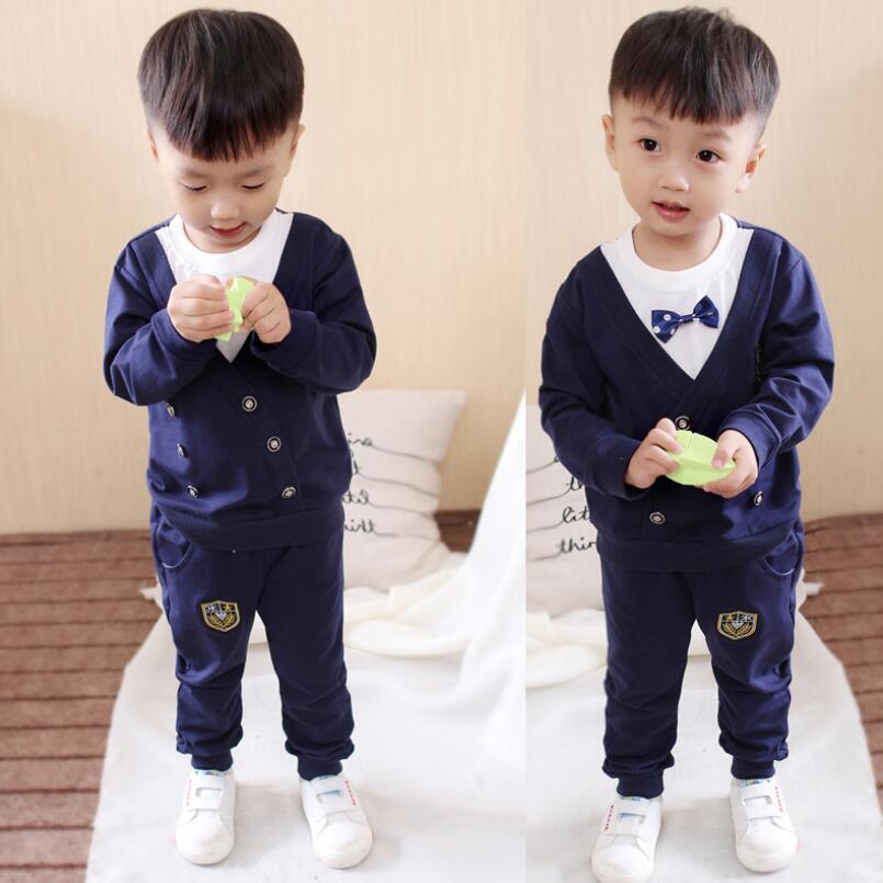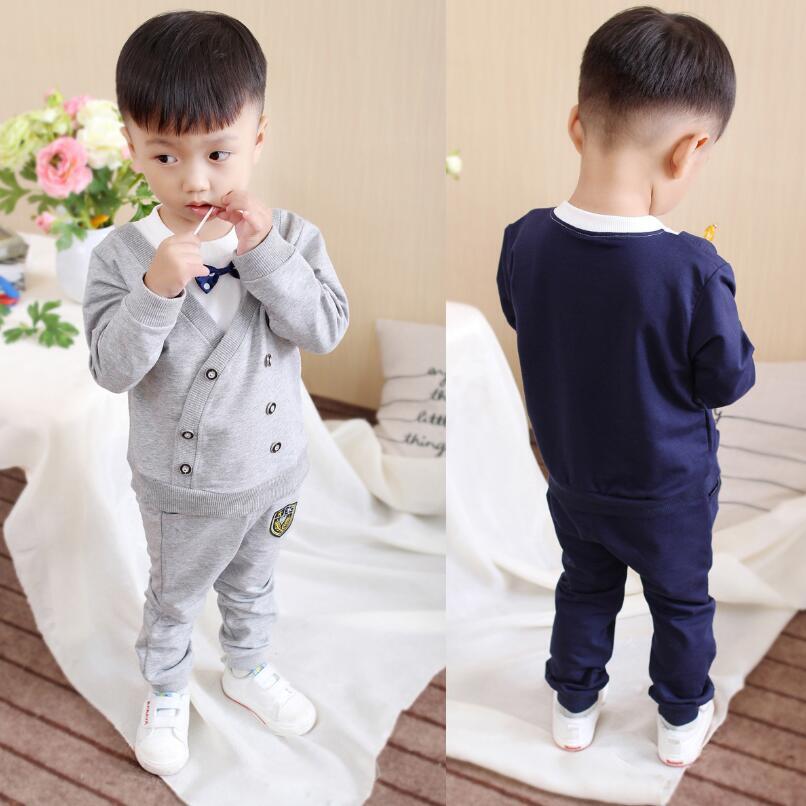 新作 2019男の子服冬男の子グレー/ダークブルーセット長袖レジャー男の子Tシャツ+パンツ2個子供服セット ロング ウィンター 冬物 キッズ