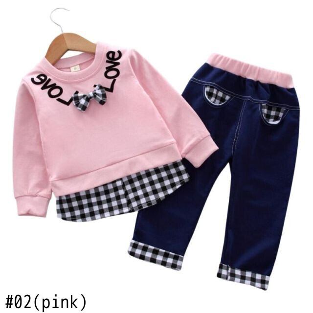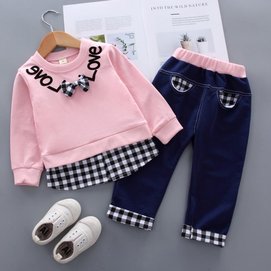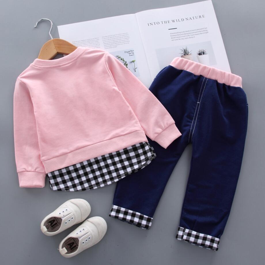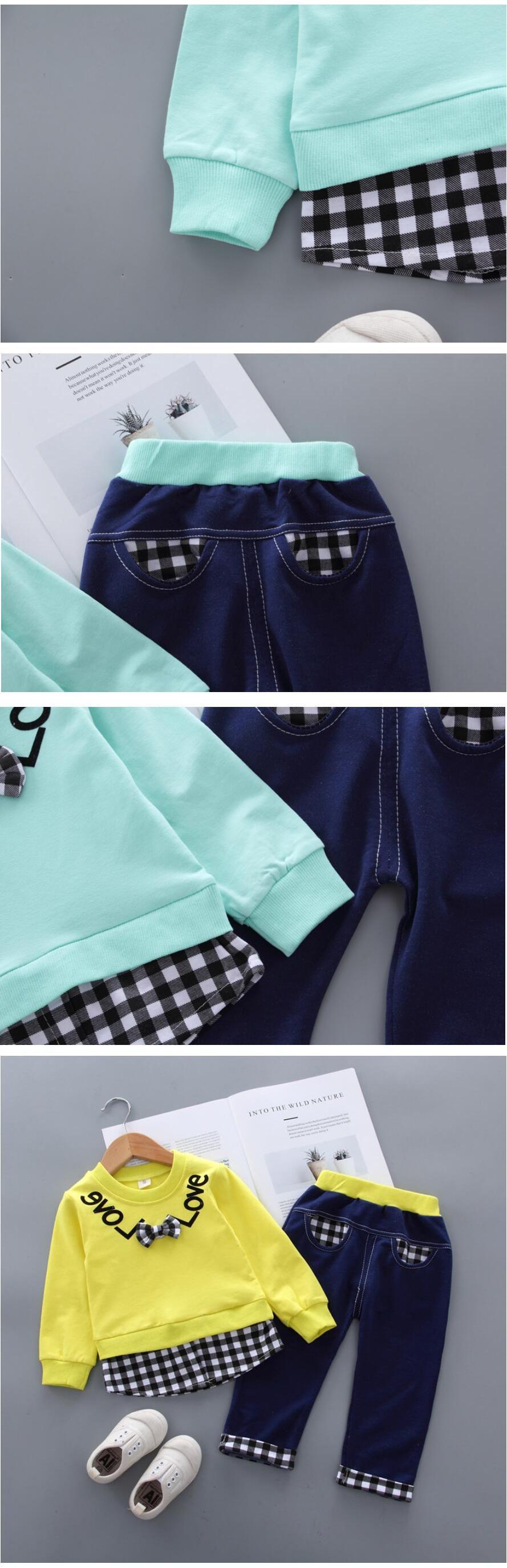 新作 春秋の服の女の子偽の2つの格子縞のシャツトップTシャツパンツ2個/セット幼児の子供たちの幼児のトラックスーツ スプリング 春物 オータム 秋物 キッズ