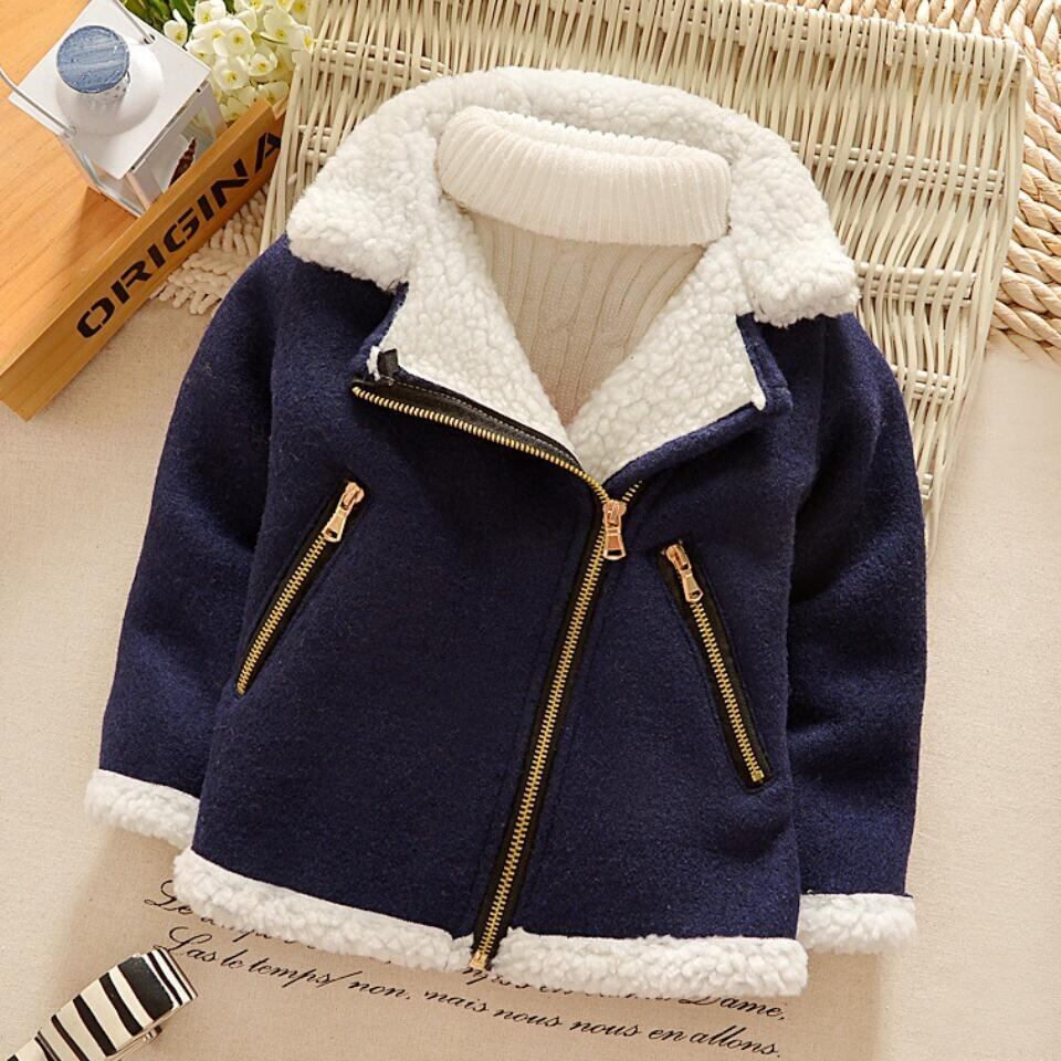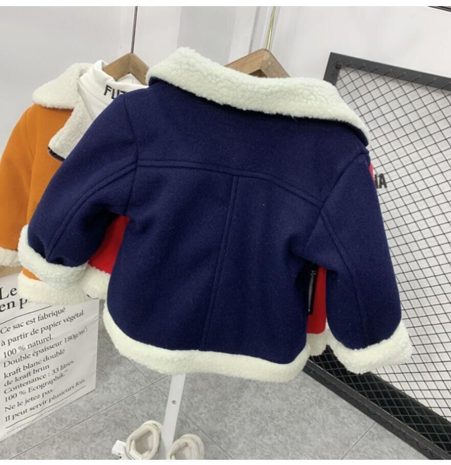 新作 厚手のウォームボーイズガールズラージラペルプラスベルベットジャケットアウター2021秋冬子供服ベビーキッズウールコート オータム 秋物 ウィンター 冬物
