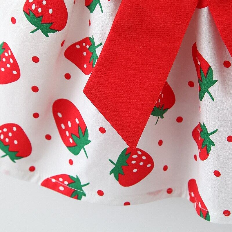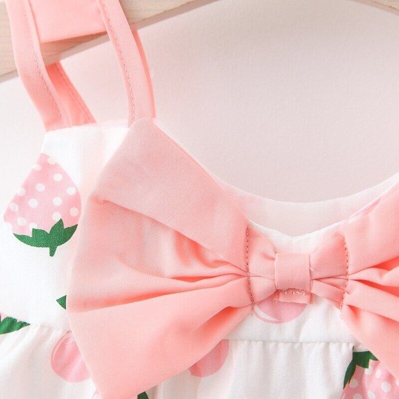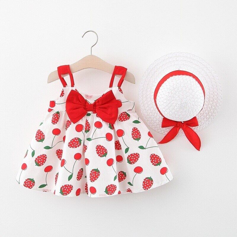 インスタ映え確実! 特価 送料無料!! 新作 生まれた小さい赤ちゃんの女の子の服 ノースリーブドレス+帽子の2点衣装セット イチゴプリントがかわいい女の子セット 夏のサンスーツ スウィート キュート カジュアル サマー 夏物