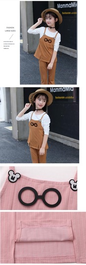新作 秋の女の子の服スーツファヒオンバージョン偽のツーピースセットシャツ+スプリットフレアパンツ10代の子供が着る レッド オータム 秋物