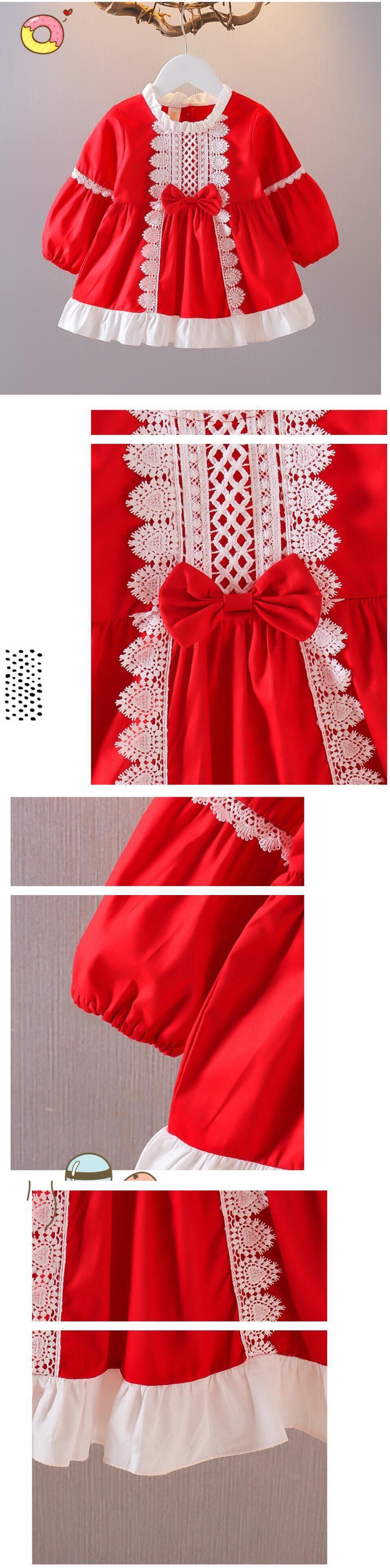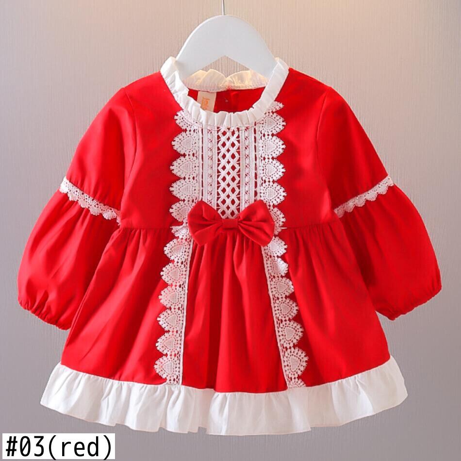 インスタ映え確実! 特価 送料無料!! 新作 春秋 ロリータスタイルの女の赤ちゃんのドレス 子供服 赤いボウノット 小さな女の赤ちゃん用