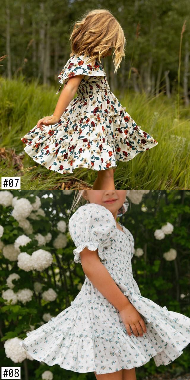 新作 夏のスモックドレスの女の子3-8歳スパンコールフリル半袖服子供シフォンパーティー ショート ハーフスリーブ サマー 夏物