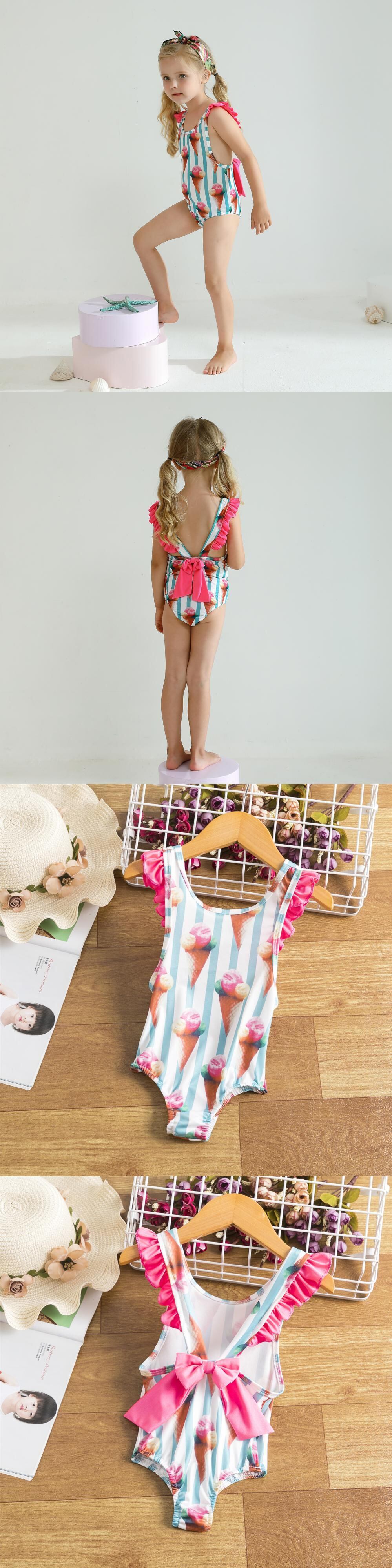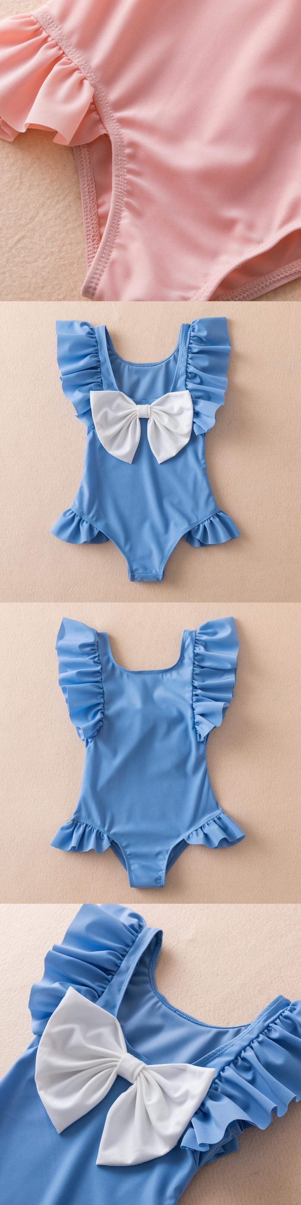 新作 幼児の女の子夏ワンピース水着キッズルーフルピンク水着子供ビッグボウ水着女の子服ベビーガールビーチウェア リボン サマー 夏物