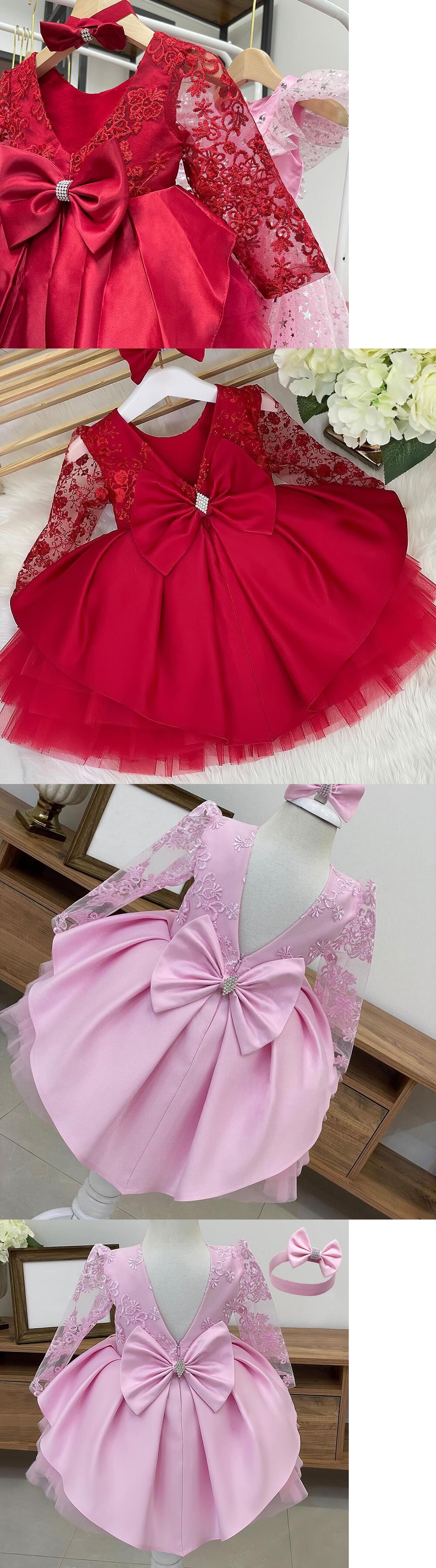 インスタ映え確実! 特価 送料無料!! 新作 春/夏 長袖 ヴィンテージ風 幼児&赤ちゃんの女の子ドレス 大きなリボンがかわいいドレス キッズ 背中の開いた服 花柄レース ロング リボン スプリング 春物 サマー 夏物 パニエ ペチコート フラワーデザイン ビンテージ