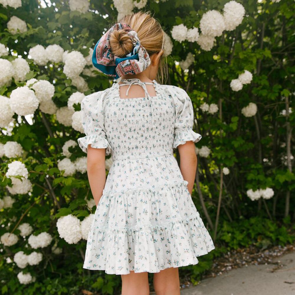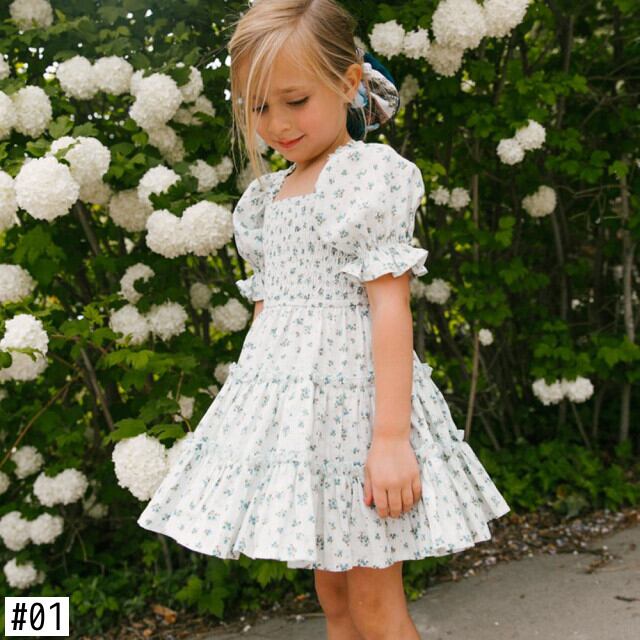 新作 2022フローラルサマードレスガールズフラワーパフスリーブフレンチスタイルドレスキッズキッズコットンブレンドドレスガールズ 夏物 花柄 フラワーデザイン