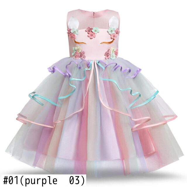 新作 ガールズユニコーンツツドレスパステルレインボーキッズバースデーパーティーフリルヴェスティド4-10Tサマーチルドレンパーマプロム 夏物 パニエ ペチコート