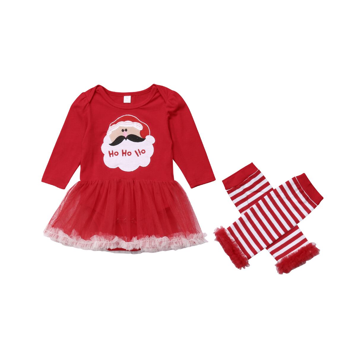 新作 0-18Mクリスマスベイビーガールロンパース漫画サンタ長袖レース赤いジャンプスーツレギンスクリスマスベイビーガール服 ロング レッド