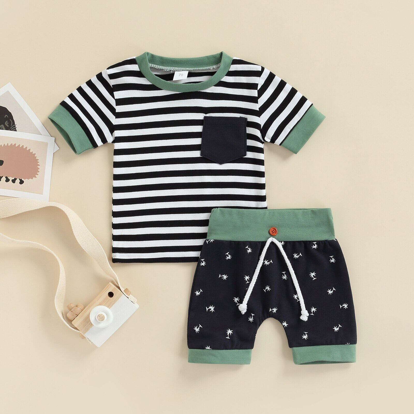 新作 Ma&Baby0-24M生まれの幼児男の子服セットストライプTシャツショーツSummerBosy s D35 サマー 夏物 ブルマー