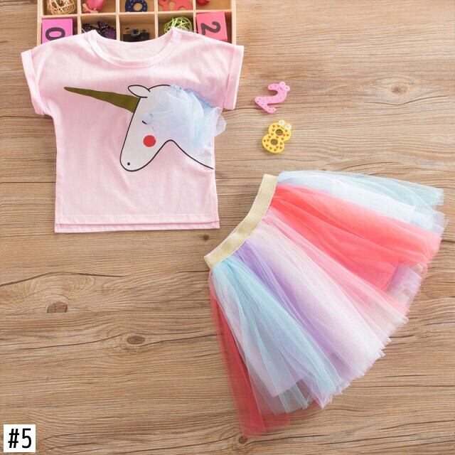 新作 夏の女の子の布セットキッズドレス結婚式Uincorn漫画プリント子供服女の子の誕生日パーティー サマー 夏物