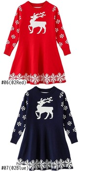 新作 冬の子供たち暖かい長袖編み物セータードレス女の子エルク鹿スノーフレーク刺繡年服女の子 ロング 刺繍 ウィンター 冬物 キッズ