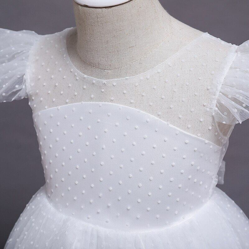 新作 フラワーガールのウェディングドレスお辞儀背中の開いたチュールチュチュ服子供キッドファンシーイブニングバプテスマパーティー リボン パニエ ペチコート フラワーデザイン