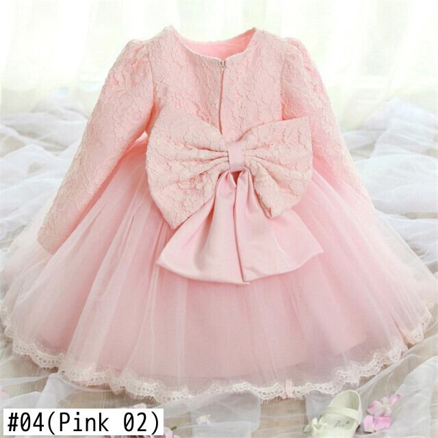 新作 生まれた赤ちゃんの女の子の服 1歳の誕生日ドレス 幼児の女の子 春秋長袖 ボウボールガウキッズレースチュチュドレス ロング リボン オータム 春秋物 パニエ ペチコート