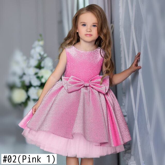 新作 4-10歳 リボンがかわいい小さな女の子の為のイブニング&ウエディングドレス 結婚式のリボンメッシュドレス 女の子の誕生日 パーティードレス