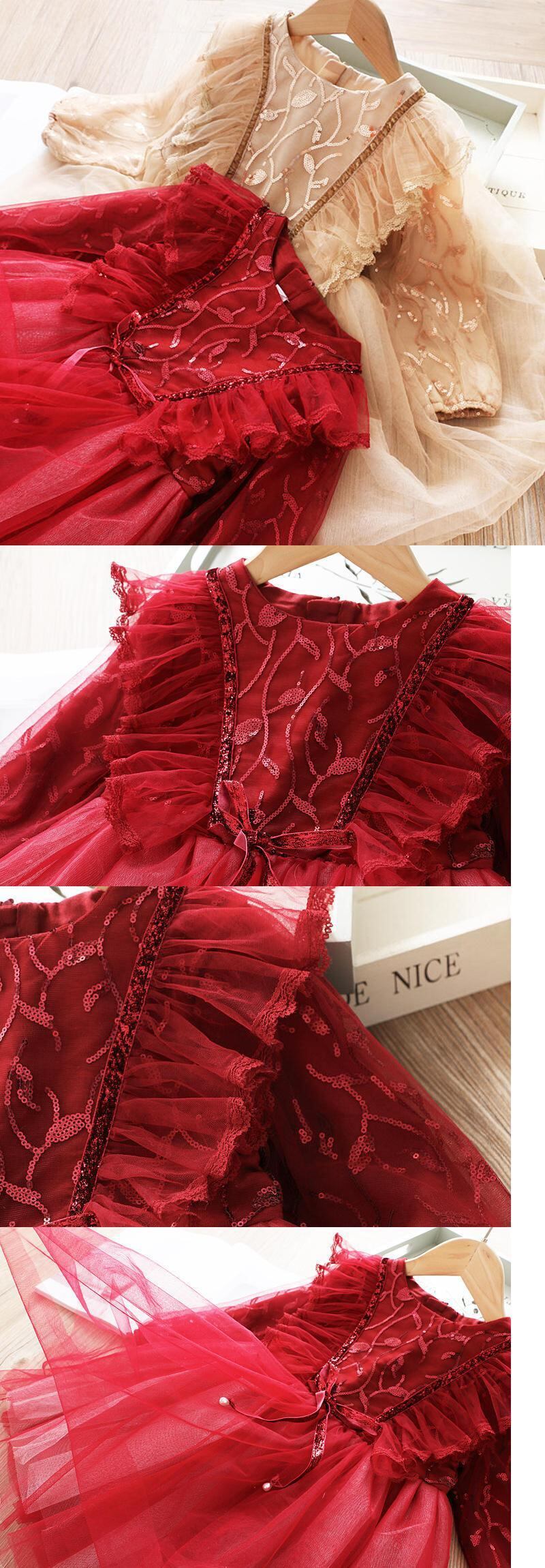 新作 女の子の冬のフルスリーブスパンコールシャイニーの女の子のイブニングパーティーチュールドレス3-8Y子供服 ウィンター 冬物 キッズ