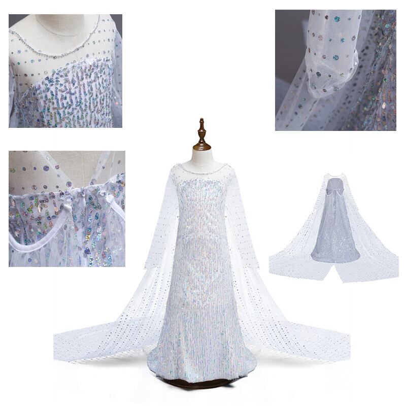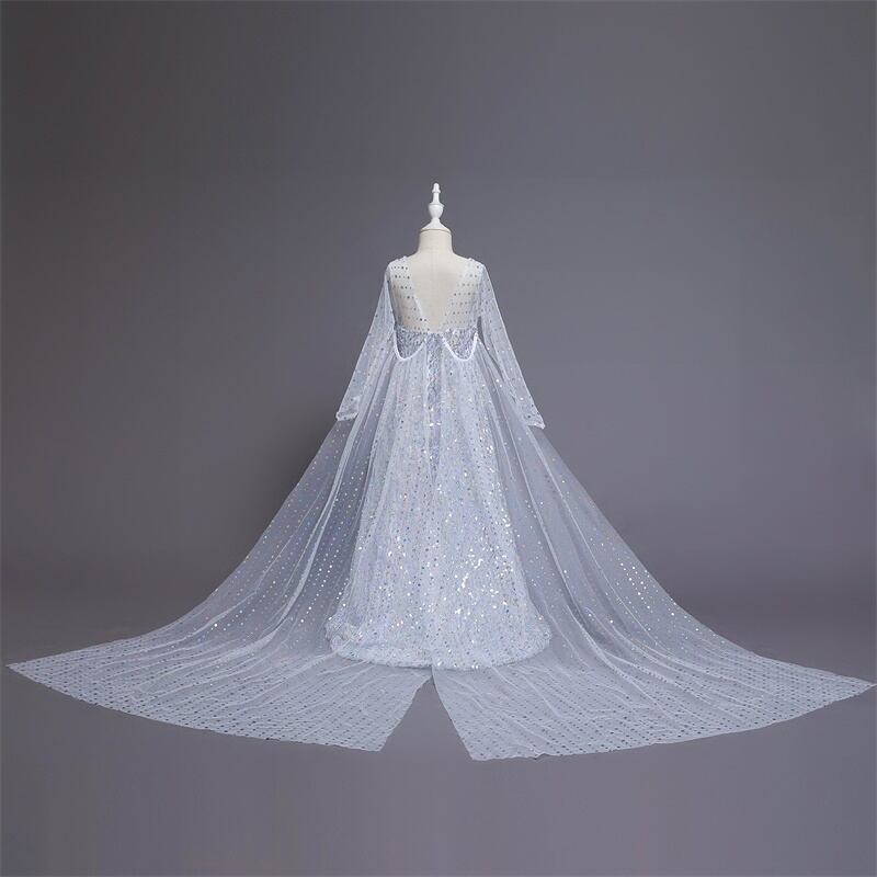 新作 2021ファンタジーエルザコスプレドレスガールズキッズスパンコールメッシュロングローブマント付き4-10T子供