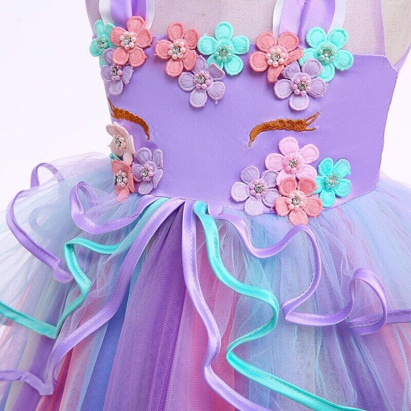 新作 2021年ユニコーンドレスガールズ刺繡ボールガウンベビーキッズバースデードレスパーティーの子供たち 刺繍