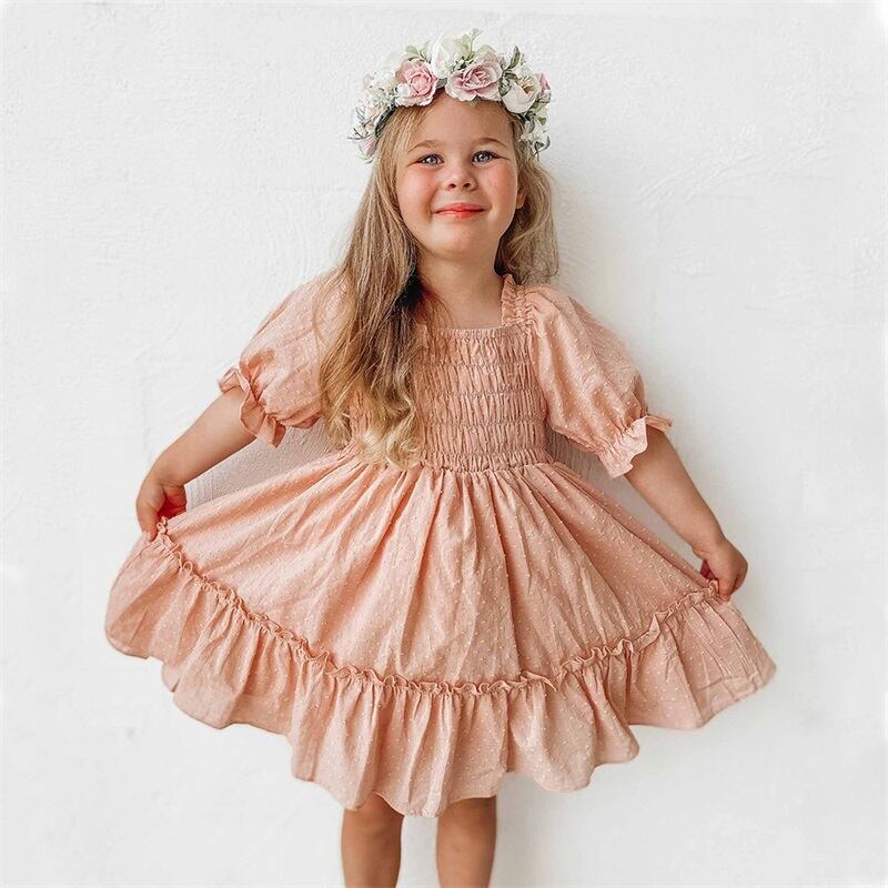 新作 春夏物 3歳~8歳用 ヴィンテージスモックフローラルドレス サマーチルドレン ウェディング パーティー ガウン キッズバケーション ビーチスモックドレス ガール 花柄 ビンテージ