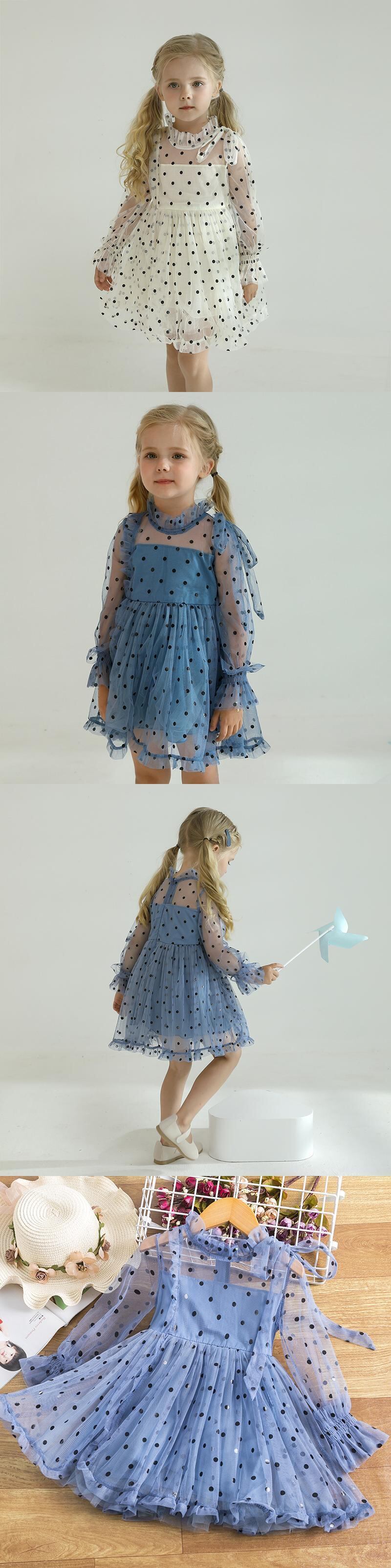 新作 Autmun冬長袖ガールズドレス誕生日ベビー服ポルカドットチュールクリスマス子供ドレス子供 ロング ウィンター 冬物 キッズ