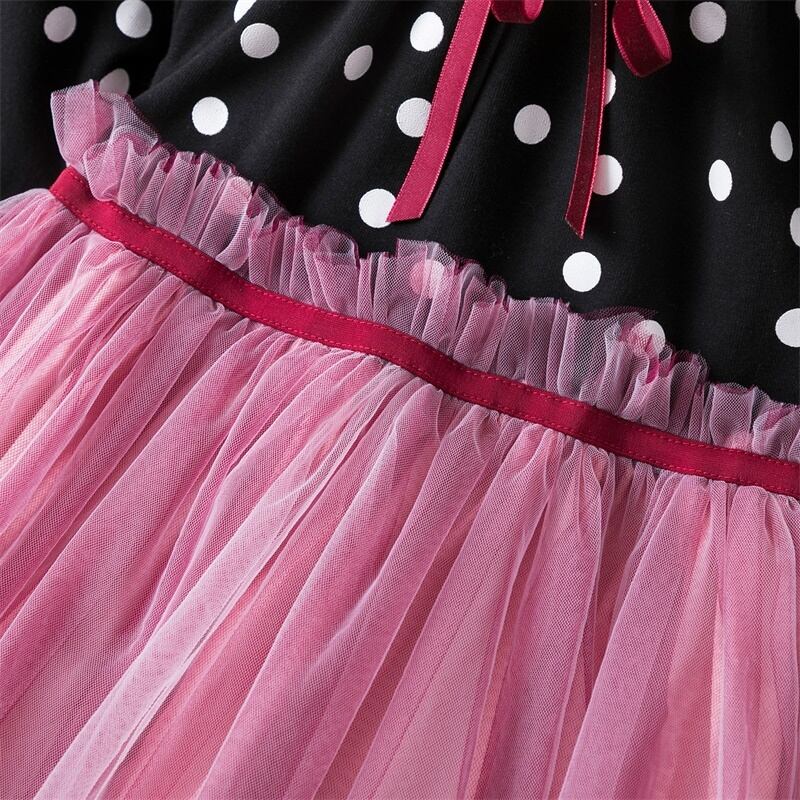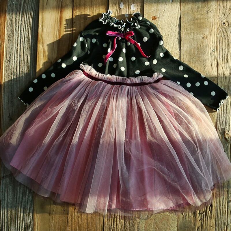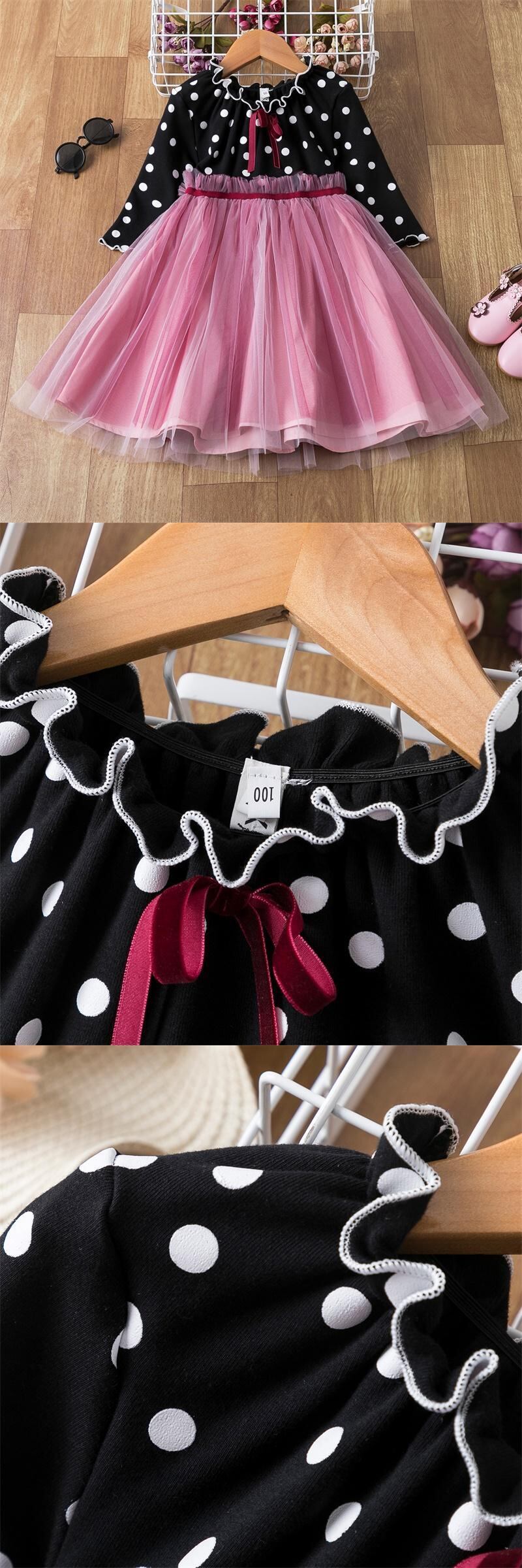 新作 春秋フルスリーブリトルキュートガールズフリルOネック水玉ボウチュールチュチュドレスキッズs リボン 大人ガーリー スウィート カジュアル スプリング 春物 オータム 秋物 パニエ ペチコート