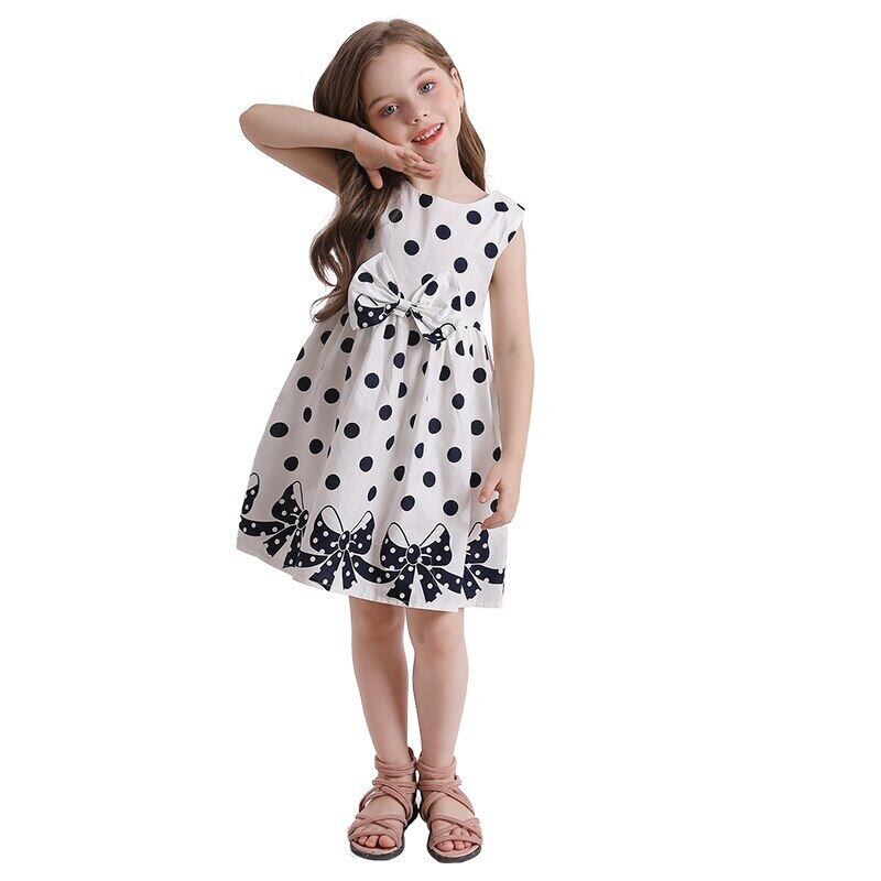 新作 サマードレス女の子ノースリーブ水玉ドレスボウノットパーティーVestidos子供子供服着用 リボン 夏物 キッズ