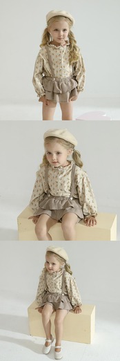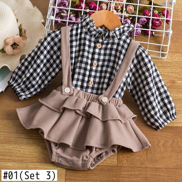 新作 ヴィンテージベイビーガールズセットリネンコットンフラワープリンティングシャツサスペンダーブリーフロンパーススーツ秋の長袖子供服 ロング オータム 秋物 キッズ フラワーデザイン ビンテージ