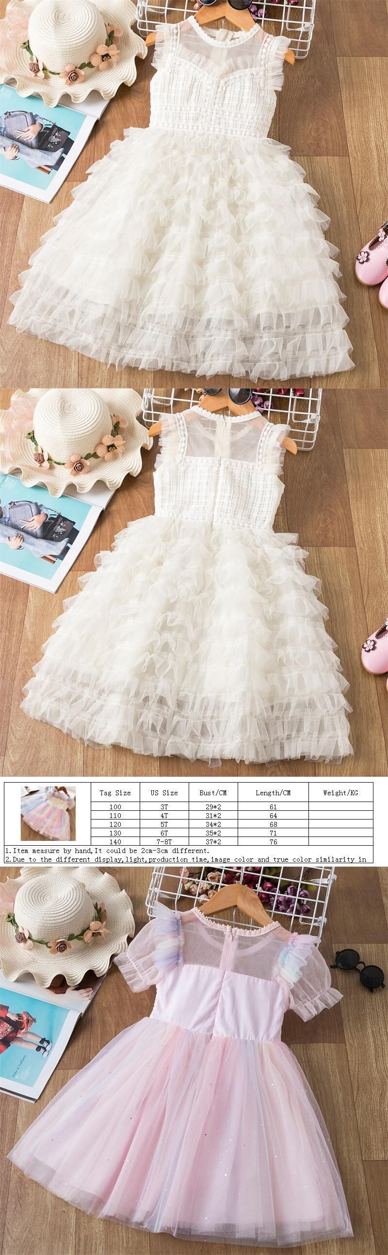 新作 2~8歳用女の子 春夏半袖ドレス キッズ フェアリーケーキスマッシュドレス ウェディングパーティー ショート ハーフスリーブ サマー