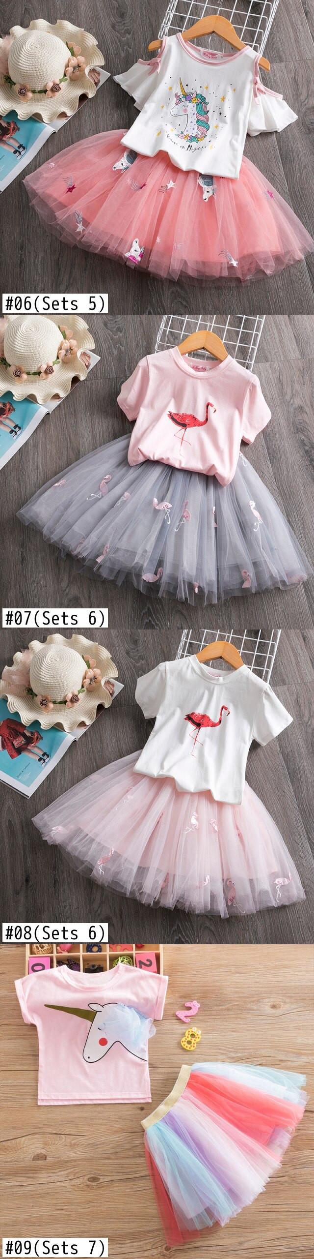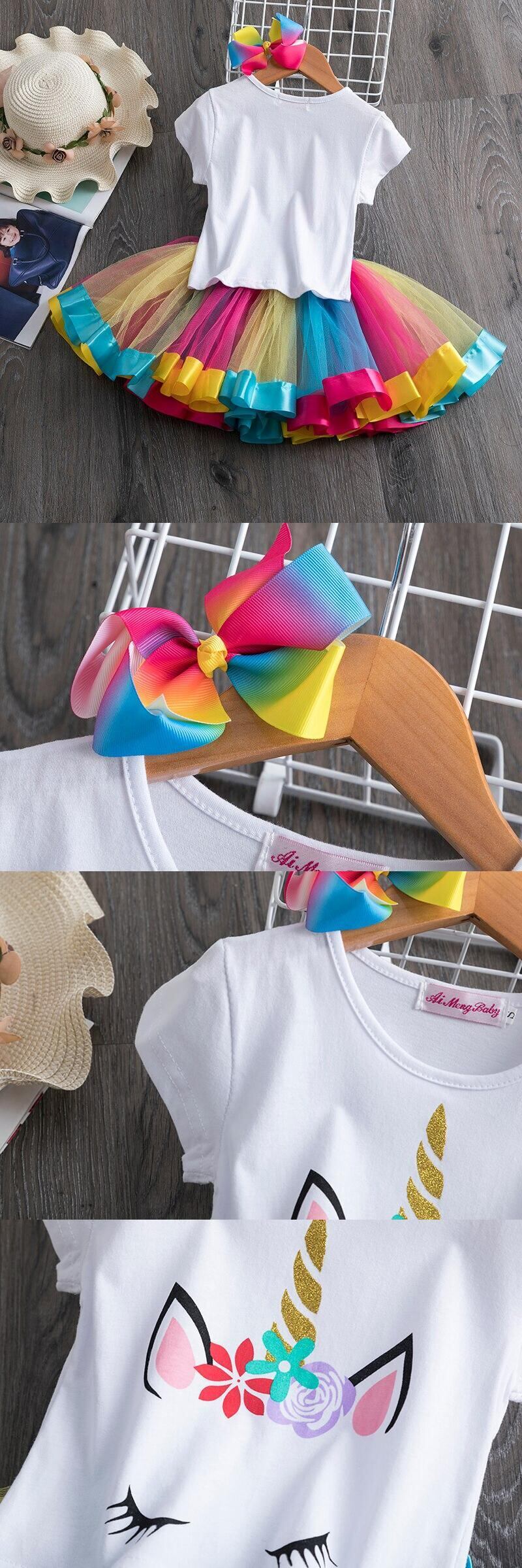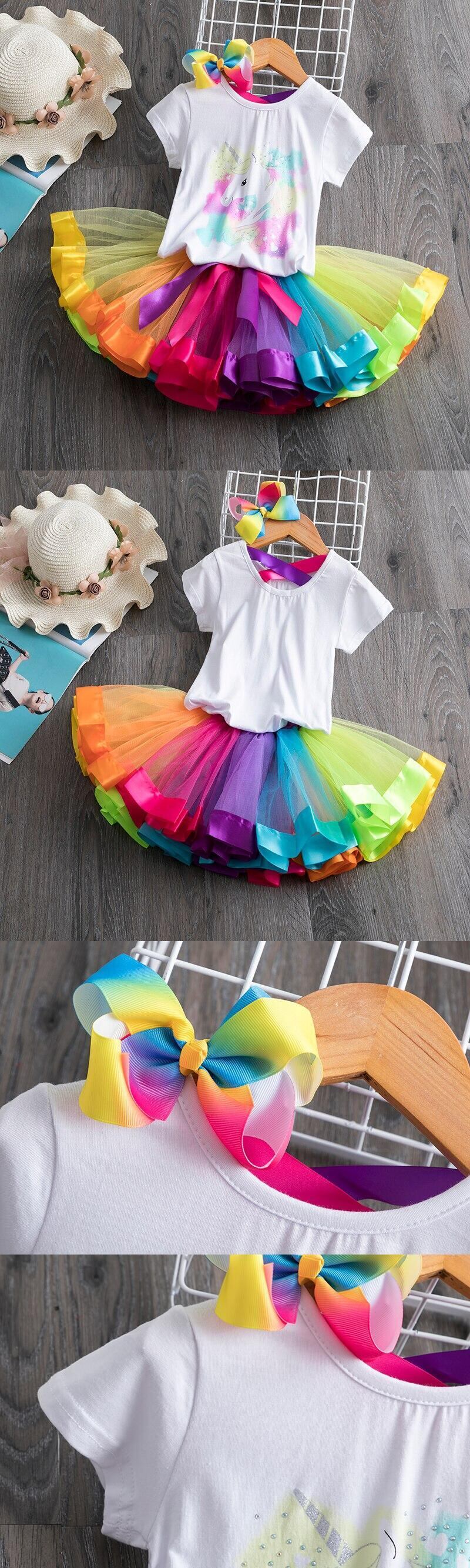 新作 女の赤ちゃんの服の漫画のTシャツ+レインボーチュチュスカート子供セット誕生日の結婚式のパーティードレス夏のキッズスーツ サマー 夏物 パニエ ペチコート