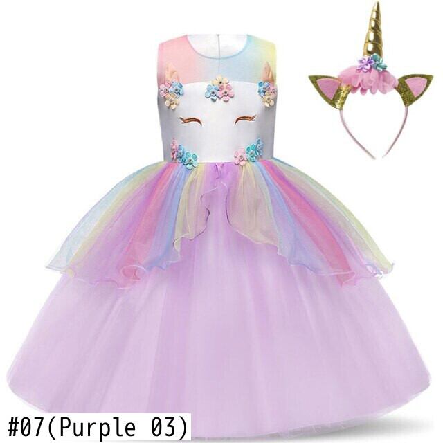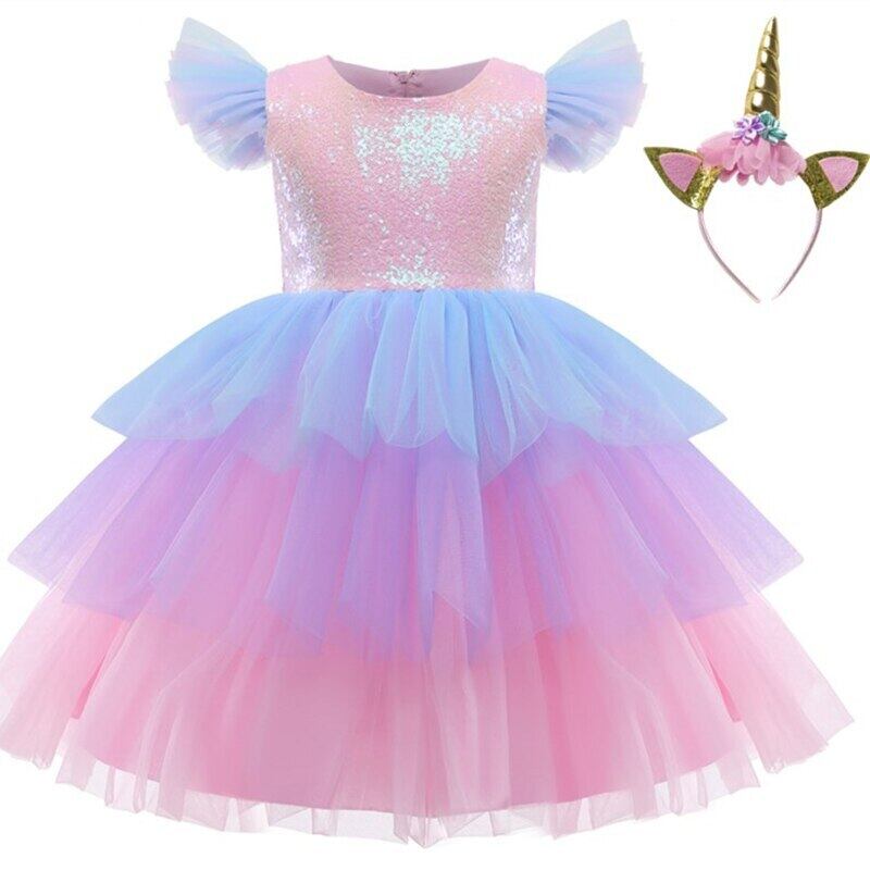 新作 夏のユニコーンドレス女の子のドレスレインボースパンコールキッズ誕生日パーティー子供フラワーウェディングドレスVestido サマー 夏物 フラワーデザイン