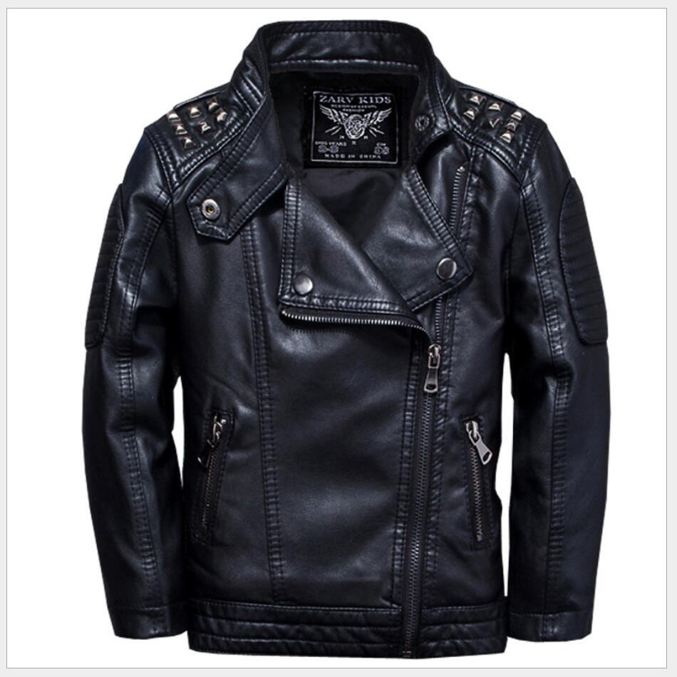 新作 子供用レザージャケット2021秋冬ボーイズリベットPUレザー防水コートキッズコート オータム 秋物 ウィンター 冬物